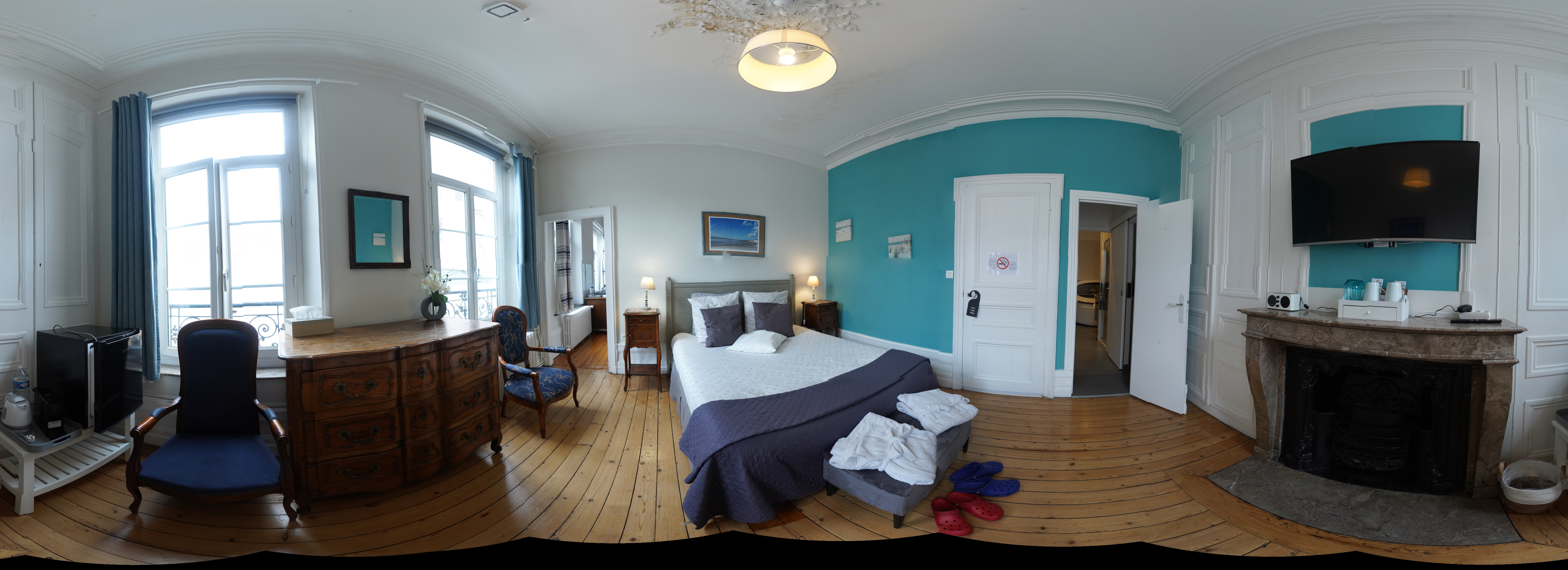 The master bedroom has a large bed (160x200cm), a connected television (Netflix) with a flat screen and TNT channels, a mini bar (at an extra charge), a courtesy tray with a kettle for making tea, coffee, chocolate or cappuccino according to your wishes, a Nespresso coffee machine, an alarm clock radio with USB plugs, a wardrobe with adjoining shelves, a mini bar (at an extra charge) and a coffee machine, coffee, chocolate or cappuccino, a Nespresso coffee machine, a radio alarm clock with USB plugs, a wardrobe with adjoining shelves, a mini bar (at an extra charge), a bottle opener, beer glasses, champagne and wine flutes (on request). For those hot summer days, an air conditioner is available in the room. The second bedroom of this family room is equipped with 2 brand new large single beds (90x200cm) and a television discreetly hidden in a mirror. This room is also equipped with a desk. |